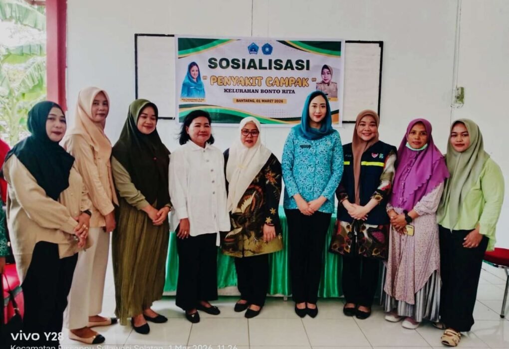BANTAENG, Fajar Timur — Tim Penggerak PKK Kabupaten Bantaeng menggelar kegiatan Sosialisasi Imunisasi dan Bahaya Penyakit Campak yang digelar di Kantor Lurah Bonto Rita, Kecamatan Bissappu, Minggu (01/03/2026). Sosialisasi ini dihadiri dan dibuka langsung oleh Ketua TP PKK Kabupaten Bantaeng, Ny. Gunya Paramasukhaputri, Hadir pula Camat Bissappu, Lurah Bonto Rita, Kader Posyandu, Kader PKK dan…